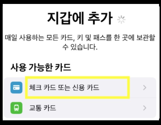-신용카드 또는 체크카드를 탭 하여 카드 추가를 해주세요.