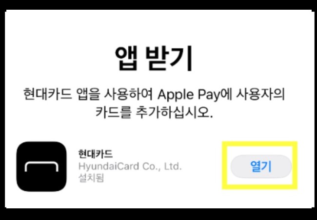 -현재 국내에서는 현대카드 앱만 애플페이 사용이 가능하기 때문에, 현대카드 설치되어 있는 앱에 접속하셔서 현대카드에 필요한 애플페이 등록에 관한 동의를 하고 신용카드를 등록해 줍니다.